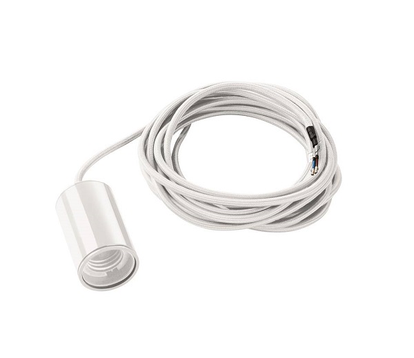 SLV 132610 Fitu E27 pendelarmatuur met stofkabel zonder plafondplaat 5,0m wit