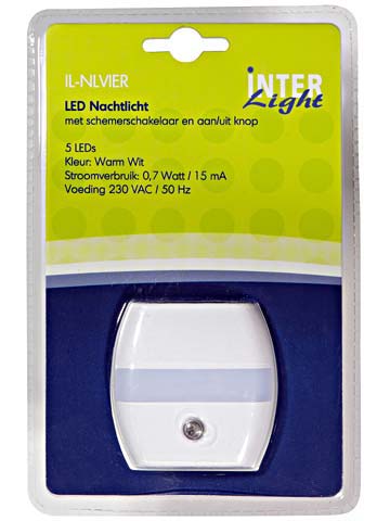 Interlight IL-NLVIER LED nachtlamp vierkant 0,7W met lichtsensor