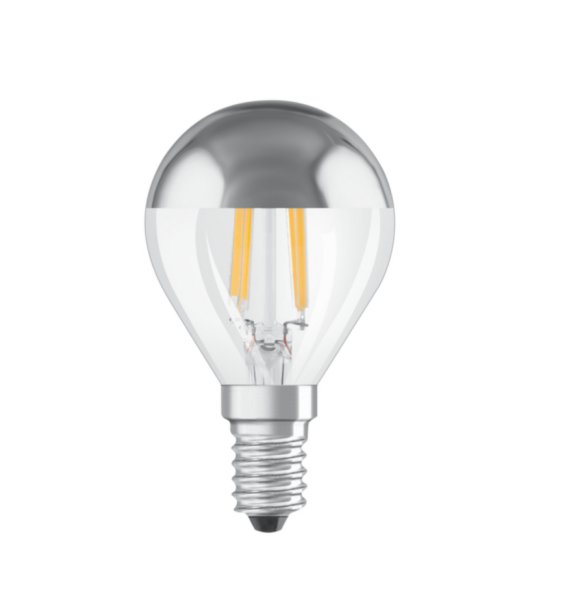 Osram Parathom Mirror filament LED kopspiegel kogellamp 4W=34W E14 220V-240V 2700K kleur 827 zilver helder niet dimbaar
