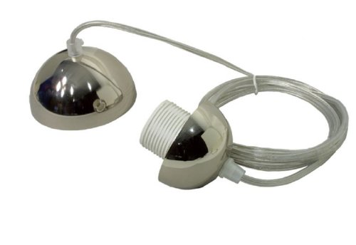 Pendelsnoer 2m E27 + kap + ring met flens buitendraad nikkel glanzend met staaldraad