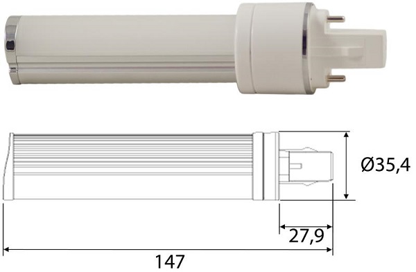 | Lengte | 147mm | ? De lengte van het product in millimeters. Bij TL buizen is deze exclusief de metalen pinnen aan het uiteinde, tenzij anders aangegeven. |